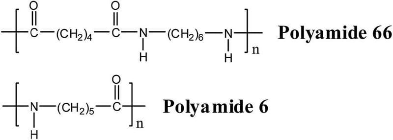 PA 6 là loại vật liệu có độ dẻo dai tốt, thường được dùng làm chi tiết kết cấu ô tô, v.v. PA 66 là loại vật liệu có độ dẻo dai và độ cứng, được dùng làm bánh răng công nghiệp như chân vịt tàu biển.