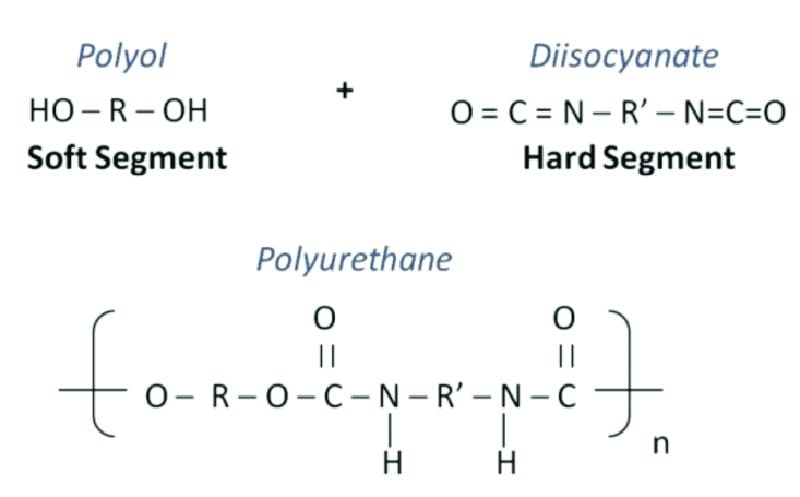 Nhựa PU thường được sản xuất bằng cách phản ứng giữa isocyanat polyme với polyol. Nhựa PU có 2 loại chính có cấu trúc tương đối giống nhau gồm Polyester PU và Polyether PU.