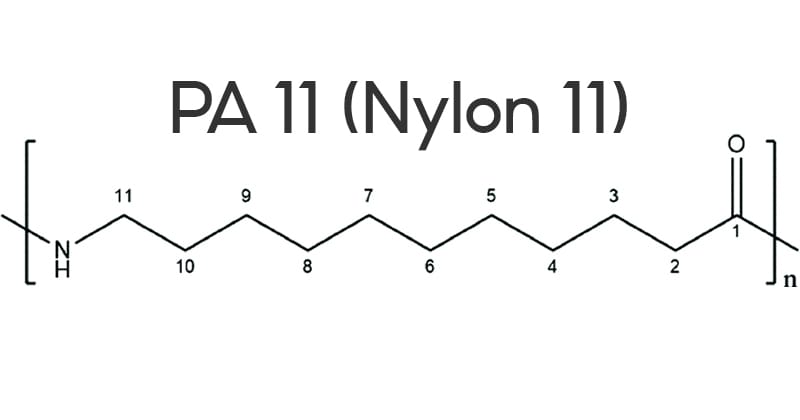 PA 11 có tên đầy đủ là Polyamide 11 hay còn gọi là Nylon 11 là một polyamide được sản xuất từ dầu của cây thầu dầu.